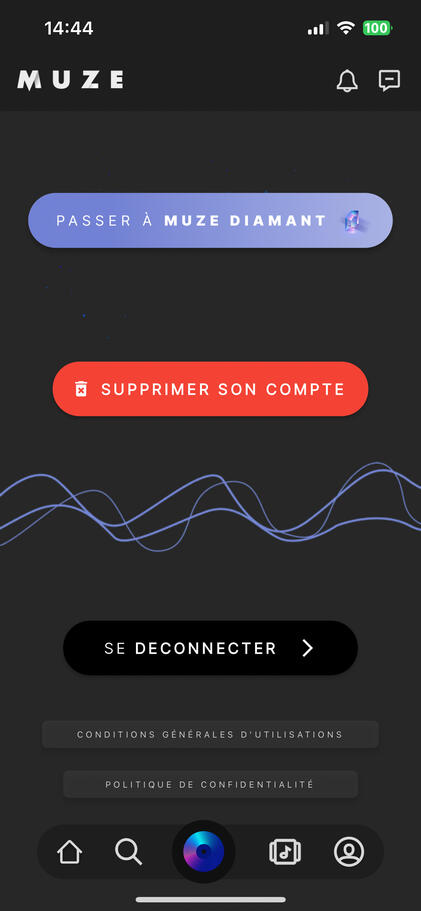 Suppression de compte sur MuzeBienvenue sur la page de suppression de compte pour l'application Muze.Si vous souhaitez supprimer votre compte Muze et toutes les informations associées, veuillez suivre la procédure décrite ci-dessous.Procédure de Suppression :⋅ Ouvrez l'application Muze sur votre appareil.